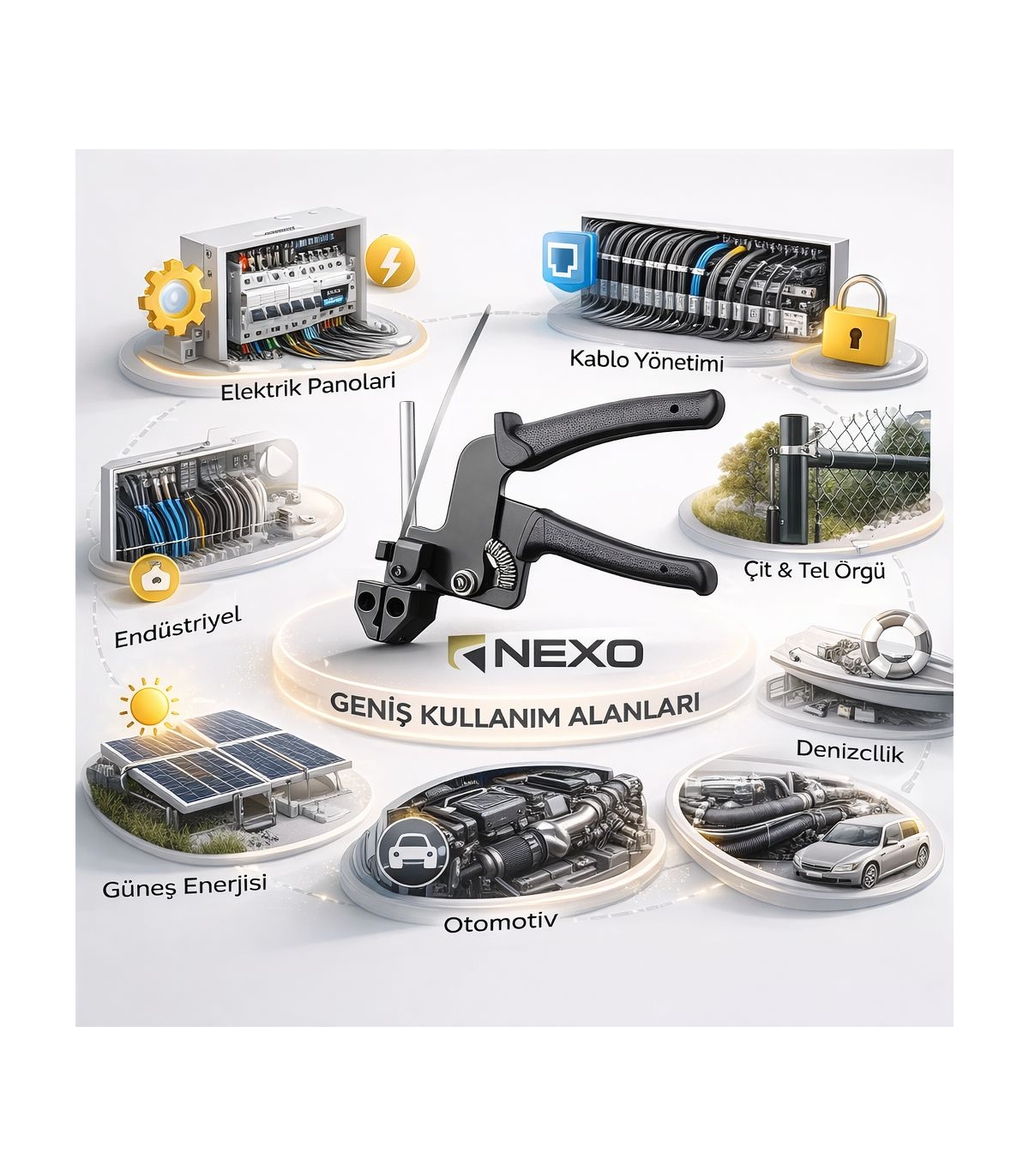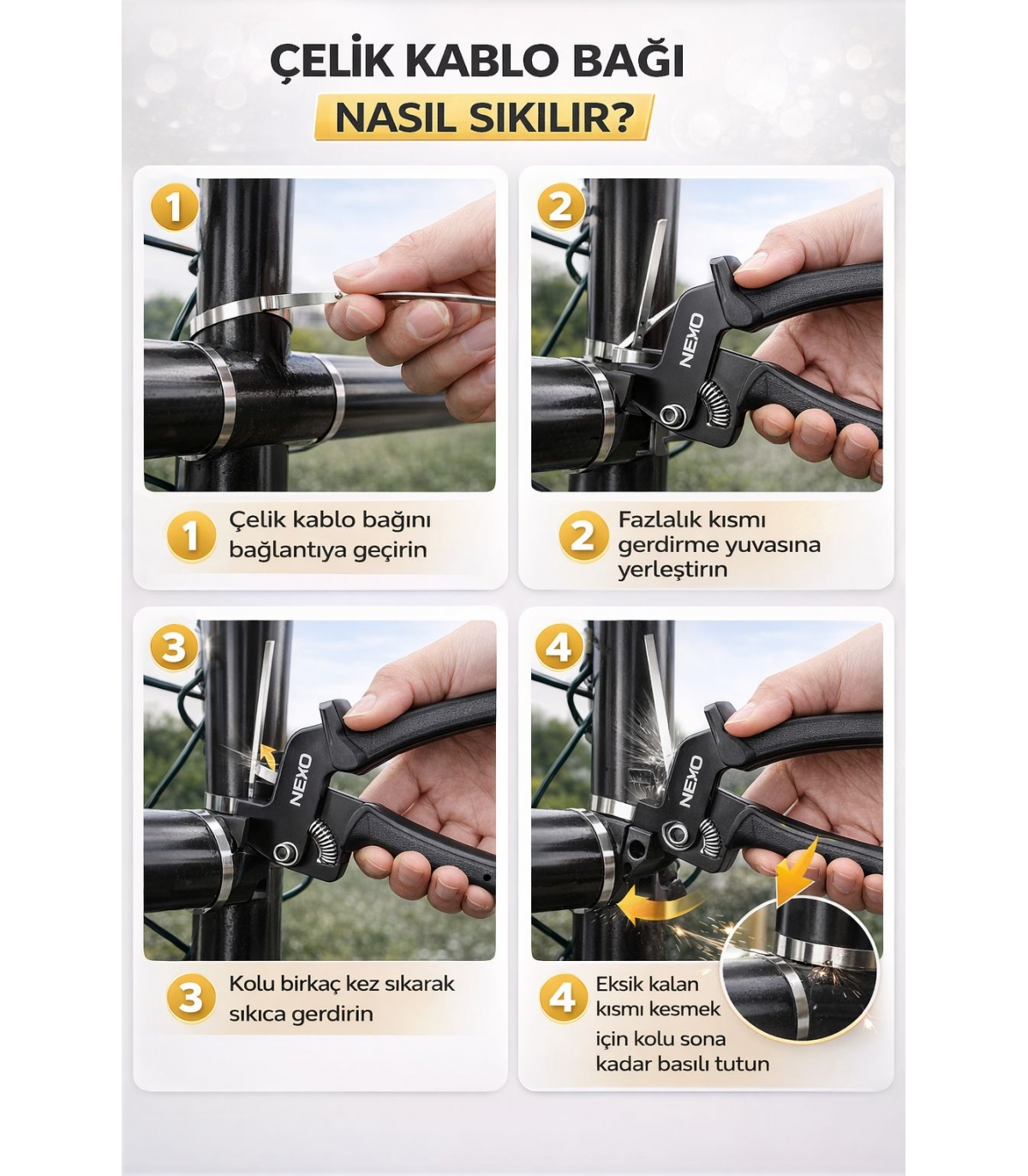 Paslanmaz çelik kablo bağlarını hızlı, güvenli ve profesyonel şekilde sıkmak için tasarlanmış yüksek dayanımlı el aletidir. Ergonomik yapısı sayesinde kullanıcıya maksimum kontrol sağlarken, güçlü mekanizması ile çelik bantları kolayca gerer ve sabitler.